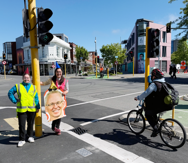 Megan and Axel worked with stakeholders from Christchurch City, Auckland Transport and NZTA, to develop an application to trial directional signals for cyclists, following the required trial procedures.  Four sites were selected: two in Christchurch and two in Auckland. The evaluation included three stages: before installation, interim (3–6 months post-installation), and final (12–18 months post-installation). The final report, released in August 2019, showed positive outcomes in terms of user behaviour, understanding and satisfaction.