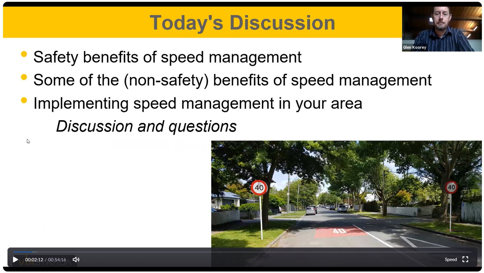 In January 2021, ViaStrada hosted an online industry webinar on speed management, attracting more than 50 people. During the first part of the presentation, Glen Koorey discussed the several benefits of speed management, both in terms of safety (crash likelihood/severity reduction) and non-safety (noise, environment, community amenity, etc). He then introduced some potential tactics for implementing speed management in your district, including physical measures, community engagement, and targeting the "low hanging fruit" first.