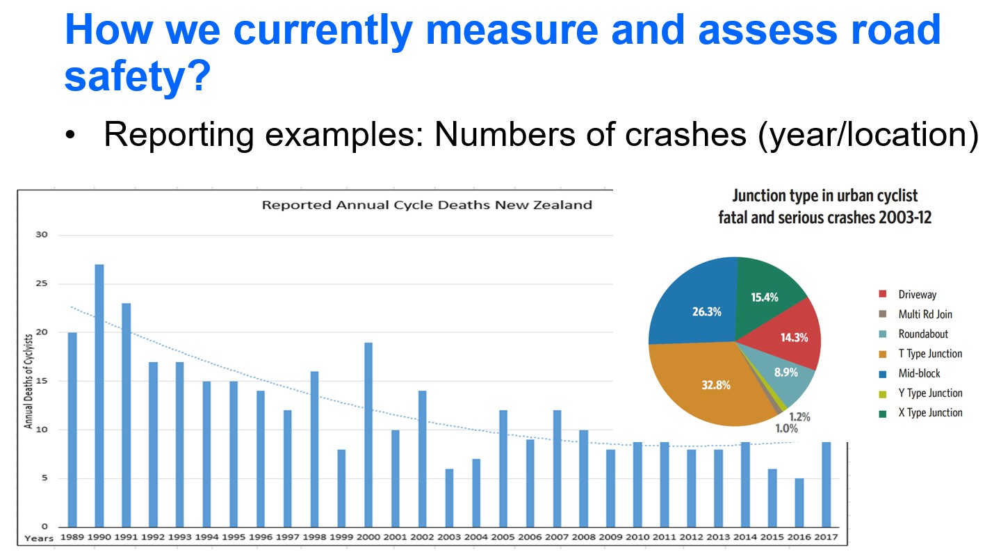 In the third of a series of Engineering NZ webinars on lessons to be learned from engineering failures, TGNZ National Cm'tee members Jeanette Ward, Glen Koorey and Bridget Burdett looked at road safety and how we currently measure that (e.g. objectives of fewer deaths/injuries/crashes), the potential issues with what we measure vs other possible objectives (e.g. health, environment, economic “efficiency”), and the associated “systemic” industry processes/constraints we have for making safety improvements happen (or not).